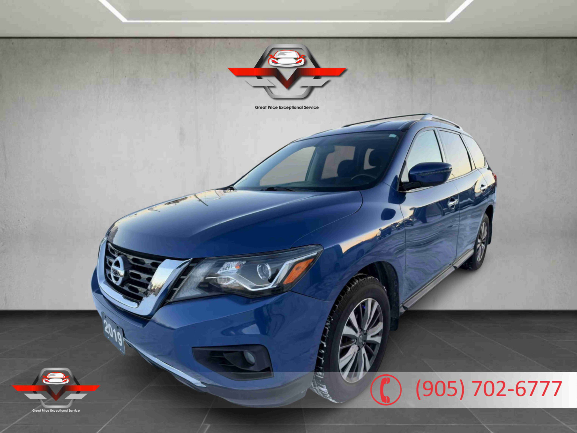 Equipped with standard features like a 8-inch touchscreen display, Bluetooth connectivity, a rearview camera, and advanced safety technologies including automatic emergency braking and blind-spot monitoring, the 2019 Nissan Pathfinder prioritizes your convenience and safety on every drive.